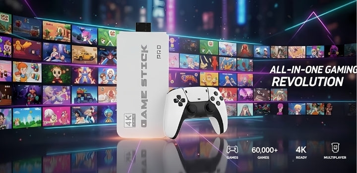 Enjoy 60,000+ games,4K graphics, and instant fun with plug & play,two controllers, and a long-lasting battery. All in one device for the whole family.